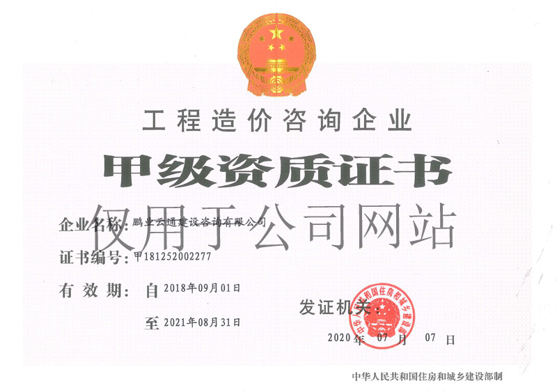 工程招標代理甲級、工程造價咨詢甲級、工程監理甲級、中央投資項目招標代理甲級、政府采購代理甲級